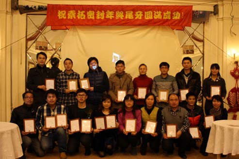 晚宴上,公司為優(yōu)秀員工頒發(fā)了獲獎證書,綜合部還安排了精彩的節(jié)目及抽獎活動。