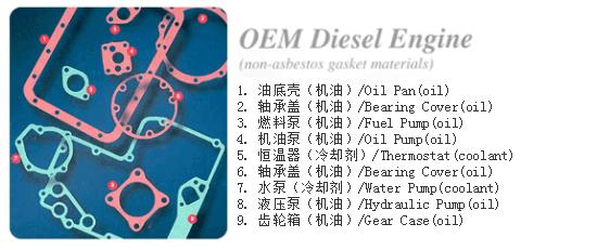 在OEM配套的柴油機(jī)市場(chǎng)中,正確選擇墊片材料需要對(duì)材料的設(shè)計(jì)性能和應(yīng)用的部件結(jié)構(gòu)有充分的了解。最重要的是材料的性能一定要滿(mǎn)足甚至超過(guò)柴油發(fā)動(dòng)機(jī)的應(yīng)用要求。因特費(fèi)斯墊片公司在為用戶(hù)選擇和推薦材料產(chǎn)品時(shí),我們不僅對(duì)選擇的部件作全面詳盡的分析,并且對(duì)選擇的材料進(jìn)行仿真性的測(cè)試,為保證材料產(chǎn)品應(yīng)用的可靠性。