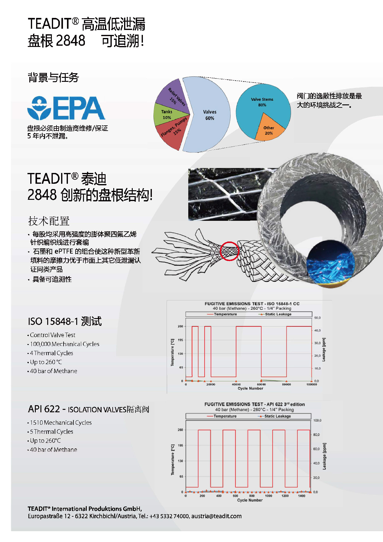 TEADIT® 2848盤(pán)根 是一種專為控制閥和隔離閥設(shè)計(jì)的低泄漏盤(pán)根填料。對(duì)于控制閥,它在ISO 15848-1泄漏的測(cè)試流程 CC3 中證明了其性能。即使在經(jīng)過(guò)100,000 次機(jī)械循環(huán)和4次熱循環(huán)后,該盤(pán)根的泄漏量仍小于 2 ppm。至于隔離閥,它已成功通過(guò) API6223版的測(cè)試,即使在經(jīng)過(guò) 1510次機(jī)械循環(huán)和 5次熱循環(huán)后,泄漏量仍低于2 ppm。