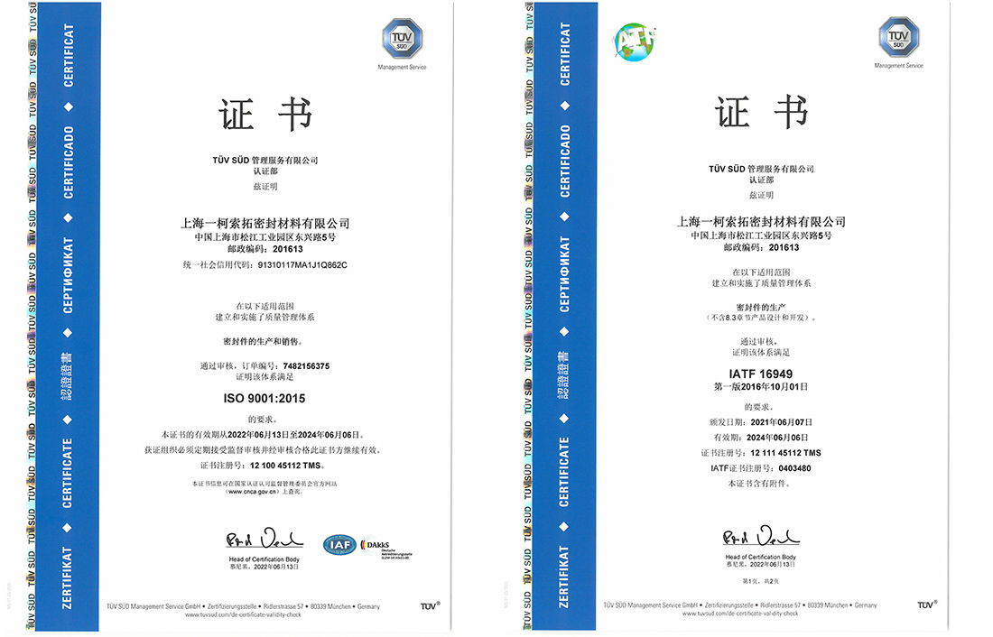 為了提升產(chǎn)品品質(zhì),加強(qiáng)企業(yè)市場(chǎng)競(jìng)爭(zhēng)力。一柯索拓通過(guò)TUV復(fù)核,于20226月更新了ISO9001IATF16949證書(shū)。
